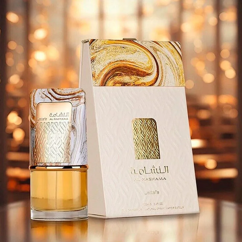 Al Nashama de Lattafa Perfumes é um perfume Compartilhável. Esta é uma nova fragrância. Al Nashama foi lançada em 2024. As notas de topo são: Sálvia, Pimenta Rosa e Bergamota. As notas de coração são: Ameixa, Jasmim e Pimenta Preta. As notas de fundo são: Couro Saffiano, Âmbar, Patchouli e Musgo.
