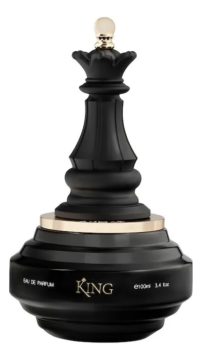 King de Armaf é um perfume Oriental Amadeirado Masculino. Esta é uma nova fragrância. King foi lançada em 2024. As notas de topo são: Ameixa Mirabelle e Notas Frutadas. As notas de coração são: Castanha, Acorde Gourmand e Especiarias. As notas de fundo são: Sândalo, Âmbar, Notas Atalcadas e Notas Balsâmicas.