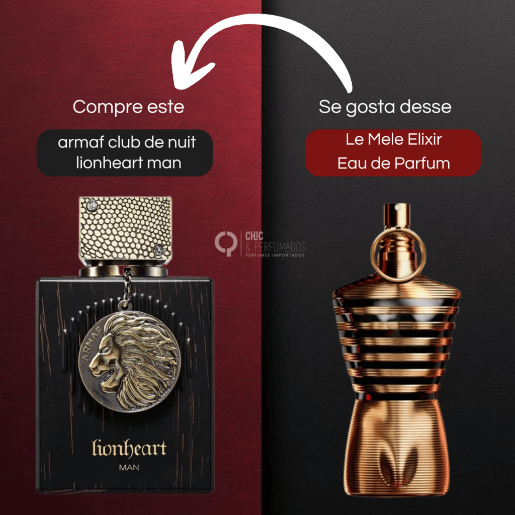 Club De Nuit Lionheart Man de Armaf é um perfume Oriental Fougére Masculino. Esta é uma nova fragrância. Club De Nuit Lionheart Man foi lançada em 2025. As notas de topo são: Lavanda e Hortelã. As notas de coração são: Benjoim e Baunilha. As notas de fundo são: Tabaco, Mel e Fava Tonka.